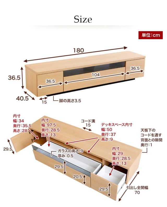 外寸:(約)幅180x奥行き40.5x高さ36.5cm