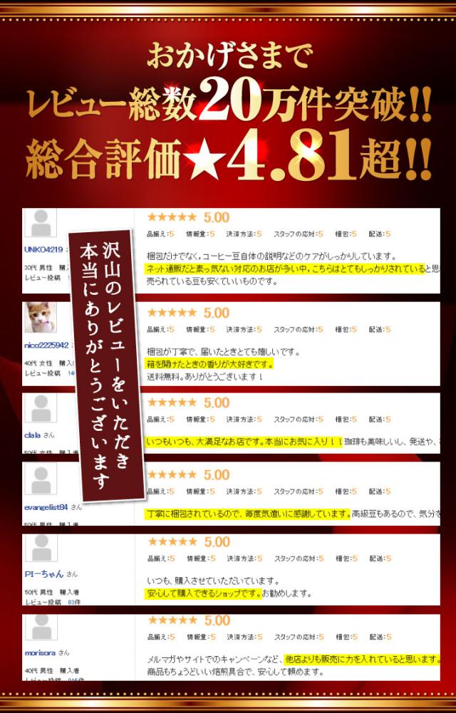 日常的にコーヒーを飲む方や初心者:「お試しにちょうど良い量」とのお声をいただいており、日常的にコーヒーを飲む人や、初めて購入する人にも負担なく楽しめます。 ギフトや特別な機会にコーヒーを贈りたい方:ギフトとしても非常にご好評をいただいています。香り高いコーヒーなので、贈り物としても喜ばれるポイントです。 |