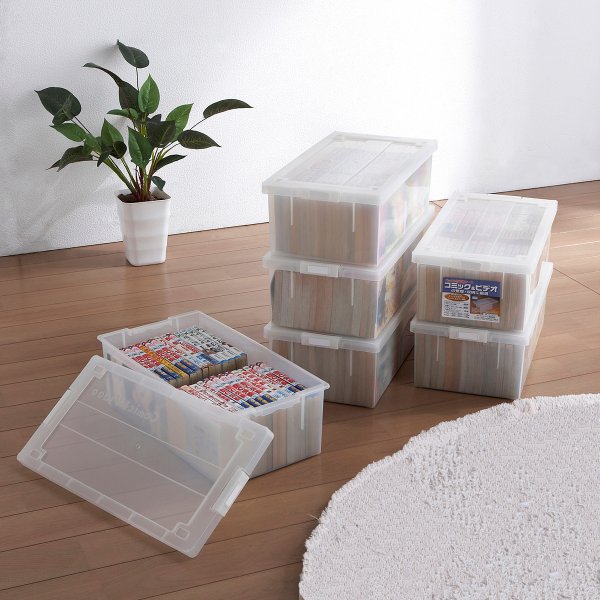 コミック 漫画 ビデオ 収納ケース バックル式 収納ボックス フタ付き カラーボックス プラスチック おしゃれ クリア 同色 6個組 完成品 日本製
