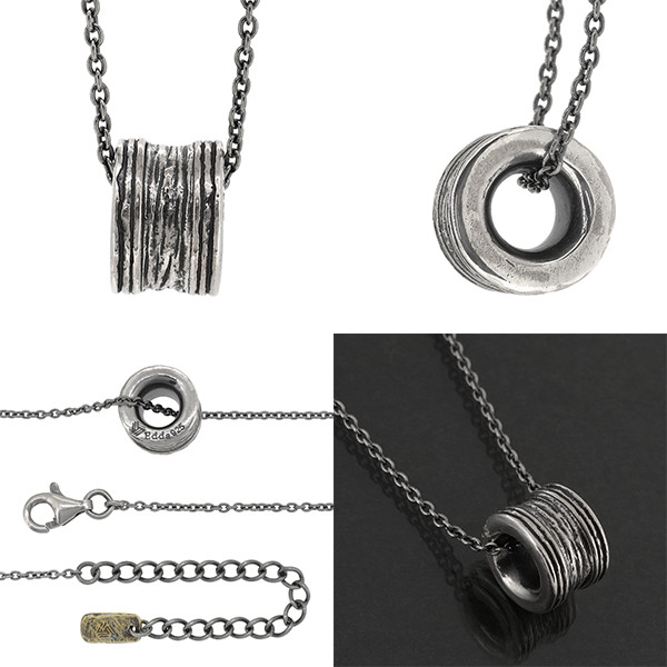 チェーンにもいぶしを効かせ、エンドチップにEddaの刻印を入れたこだわりのネックレス。