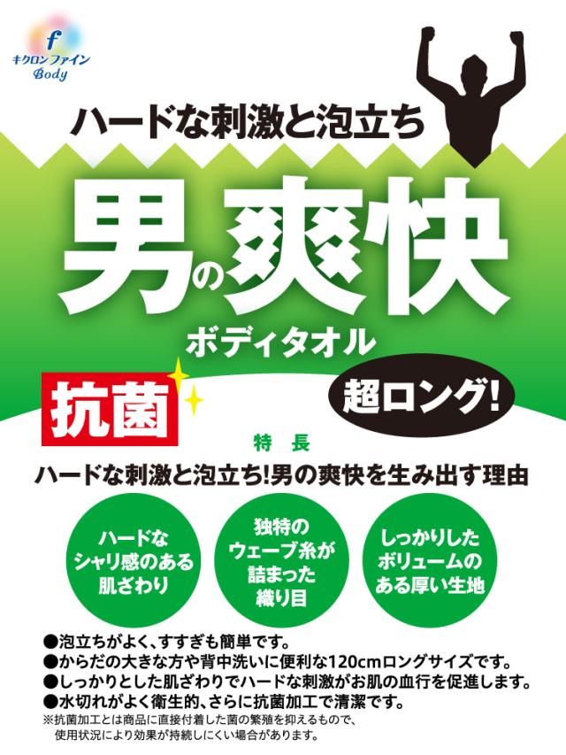 【キクロンファイン 爽快ボディタオル 超ロング 抗菌シャスターメンズ 超かため ブルーの商品詳細】