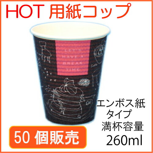 ★断熱紙コップ(SMP-260E)ブレイクタイム 50個_業務用_紙コップ 耐熱_ホット用_コーヒー_テイクアウト