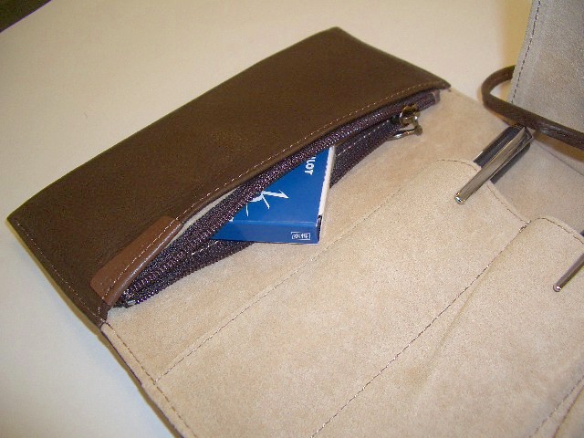 内側も柔らかい革(ピッグスウェード)で、大切なペンをしっかり保護します。