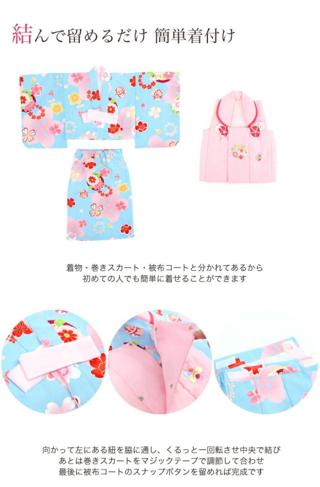 1歳女児用 簡単着付けの二部式着物!初節句・ひなまつり・お食い初めなど…