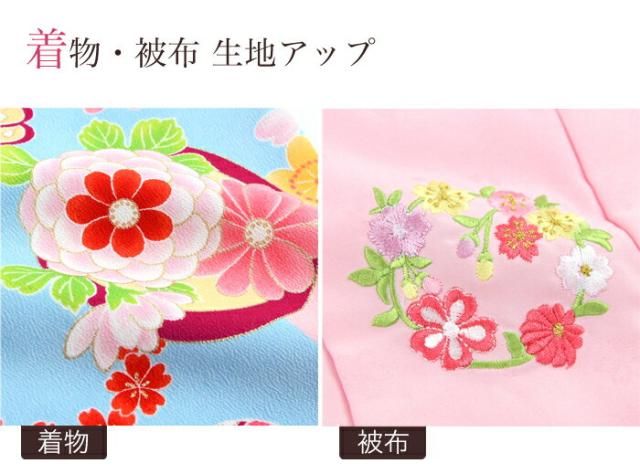 フレッシュな水色地に可愛らしいピンク色の被布。