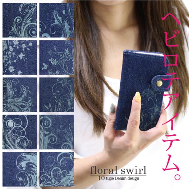 全機種対応 DM便のみ送料無料 選べる2パターンのデザイン デニム生地 シンプル 手帳型スマホケース