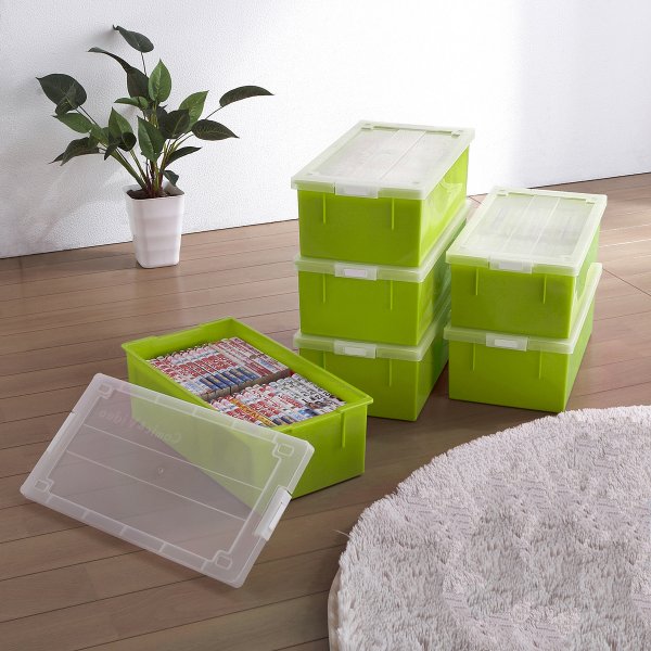 コミック 漫画 ビデオ 収納ケース バックル式 収納ボックス フタ付き カラーボックス プラスチック おしゃれ グリーン 同色 6個組 完成品 日本製