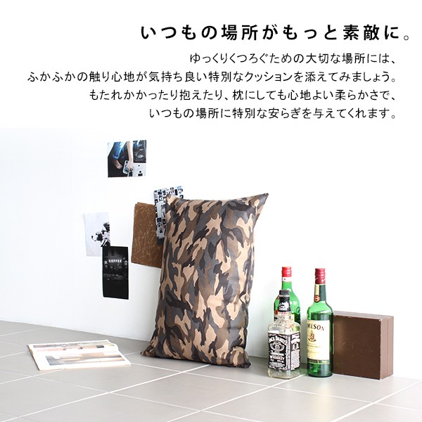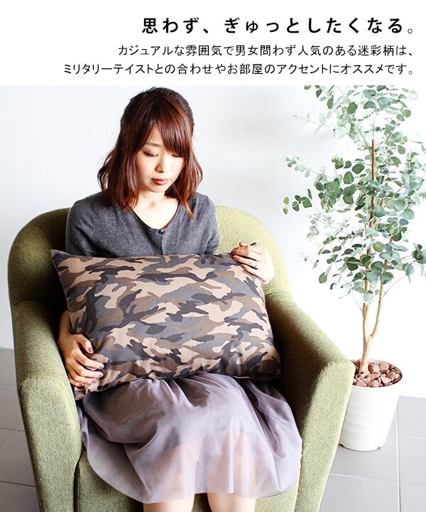 クッション 迷彩 長方形 43×63 おしゃれ 中綿付き 枕 リビング まくら 日本製 ギフト ミリタリーテイスト △