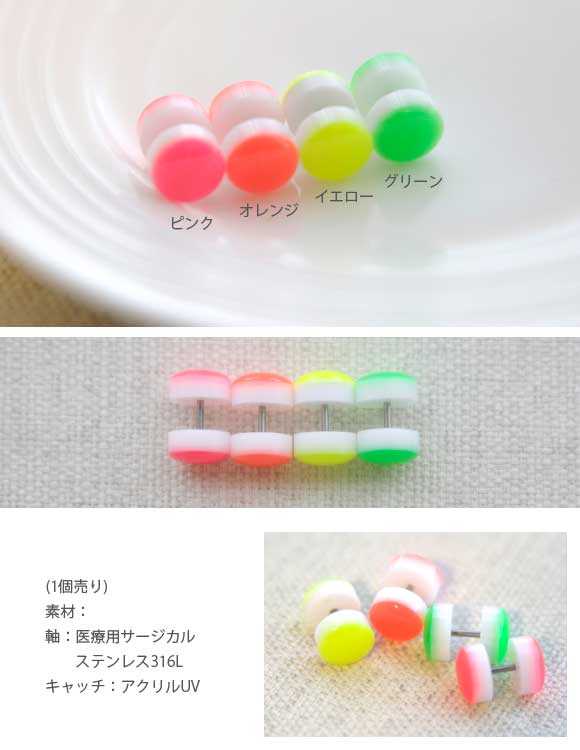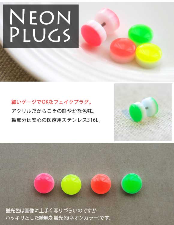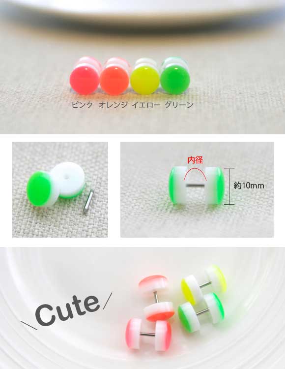 本日P2倍 16G ピアス ボディピアス 蛍光色 ネオンカラー フェイクプラグ 金属アレルギー対応 316L 高品質 ステンレス