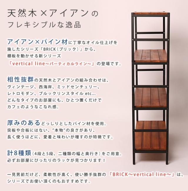 ブリックラックシリーズ4段タイプ 86×32×135 簡単組立 4段 アンティーク モダン ナチュラル オイル ミッドセンチュリー(代引不可)【送