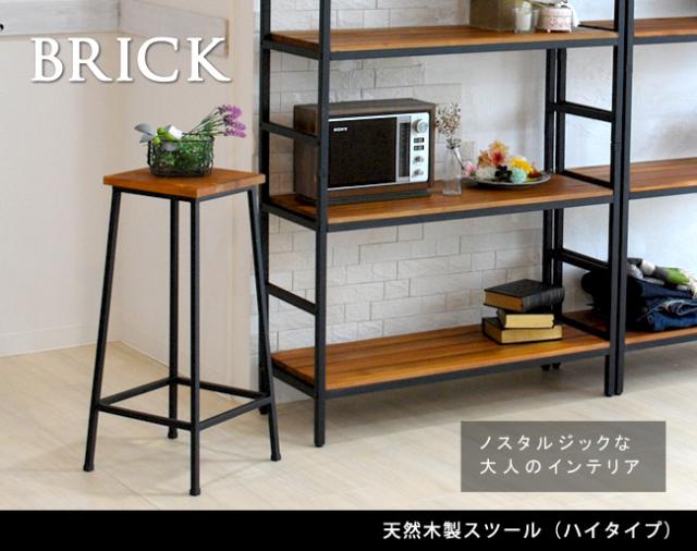 ブリック 天然木製スツール ハイタイプ 完成品 アンティーク モダン ナチュラル ミッドセンチュリー(代引不可)【送料無料】