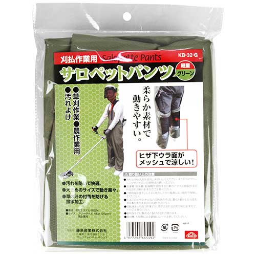 セフティ-3 サロペット 軽量、グリーン KB-32-G(代引不可)【送料無料】