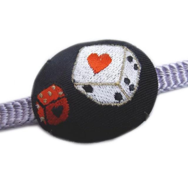 帯留め 帯止め 刺繍入り 黒色地ハートサイコロ 着物 きもの 浴衣 帯どめ 帯飾り 帯かざり