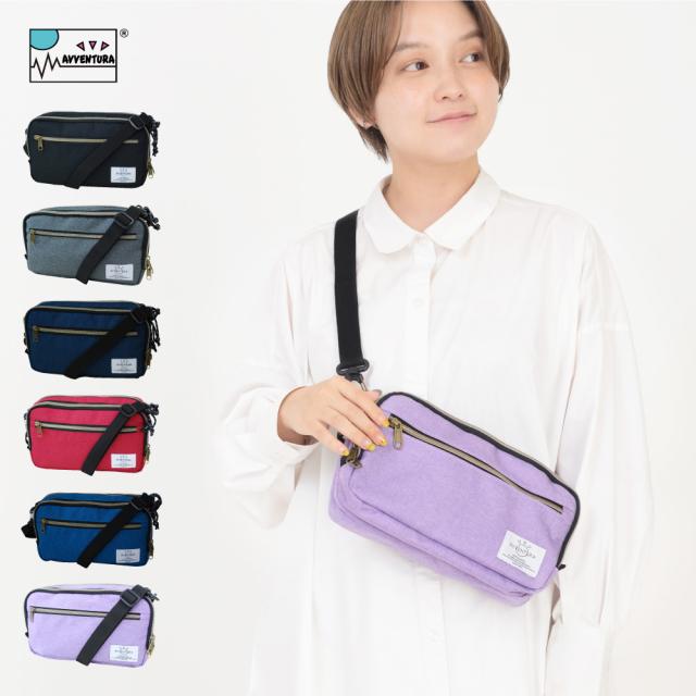 メール便送料無料 アヴェンチュラ ショルダーバッグ ミニバッグ 斜めがけ ナイロン 軽量 小さめ ポケット 多収納 ロゴ 黒 レディース メンズ 男女兼用 大人 女性 男性 大学生 女子 男子 高校生 中学生 アウトドア サブバッグ フェス ポシェット 通勤 通学 かわいい ブランド