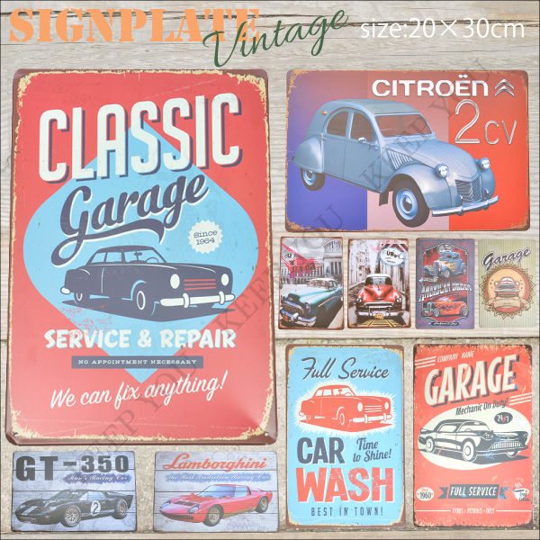 【4枚までメール便280円対応】ブリキ看板 クラシックカー 車 20×30cm ビンテージ メタルサインプレート カフェ バー アメリカン┃