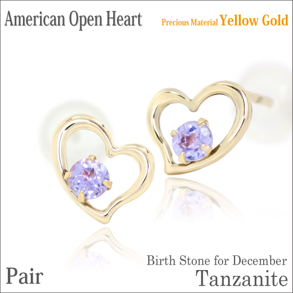 タンザナイト ピアス 送料無料 K10 イエローゴールド アメリカンオープンハート 2.5mm スタッド 両耳ペア