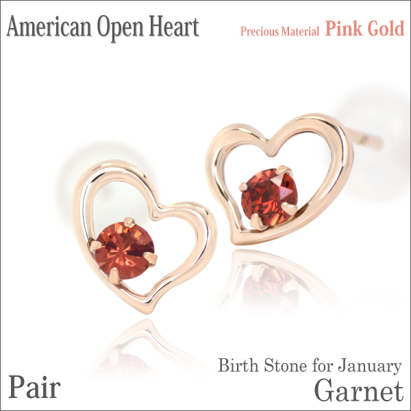 ガーネット ピアス 送料無料 K10 ピンクゴールド アメリカンオープンハート 2.5mm スタッド 両耳ペア ダブルロックキャッチ付