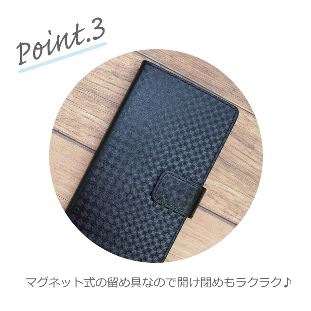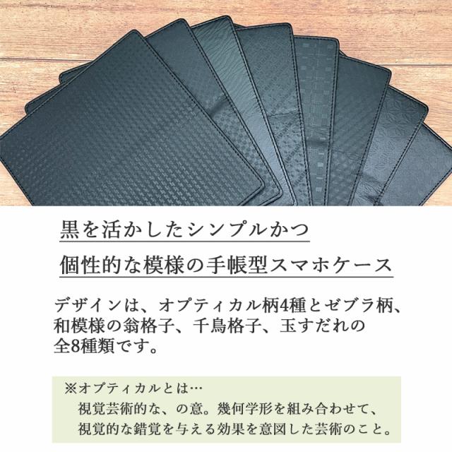 黒の手帳に特殊な印刷を施した手帳型のスマホケースです。