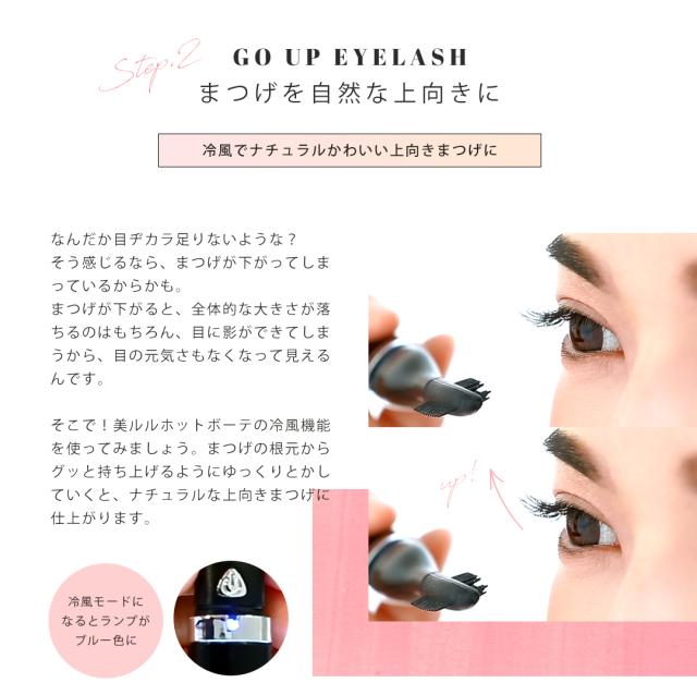 美ルル ホットボーテは、コーム部分から出る温風・冷風で、まつげを根元からぐっと持ち上げ