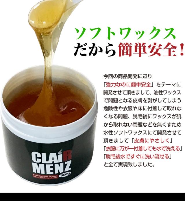 ブラジリアンワックス メンズ専用★clair Menz wax メンズ脱毛専用ラベル 500g(単品) 無添加ワックス 脱毛