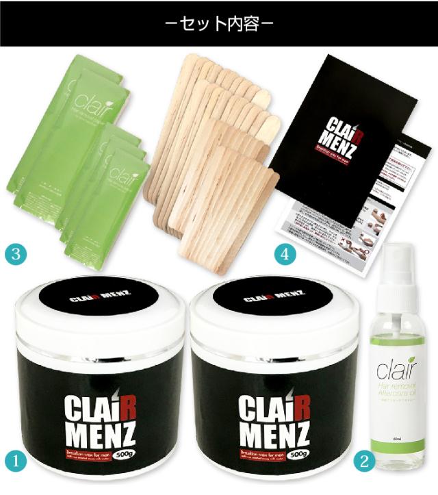 ブラジリアンワックス メンズ専用【送料無料】★clair Menz wax メンズ脱毛専用ラベル 初めてのブラジリアンワックス脱毛 全身ボリュームセット 無添加ワックス