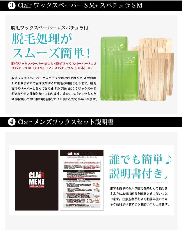 | 商品名 | 【ブラジリアンワックス メンズ専用】clair Menz wax メンズ脱毛専用ラベル 初めてのブラジリアンワックス脱毛 全身ボリュームセット |