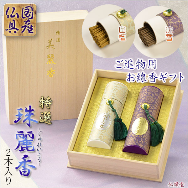 進物用線香・高級線香【特選:珠麗香(じゅれいこう) 白檀・沈香 2本入り 桐箱付】贈答用お線香 お盆・お彼岸・里帰りに 送料無料