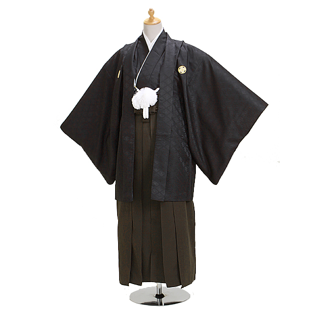 ジュニア黒紋付 こげ茶袴 中