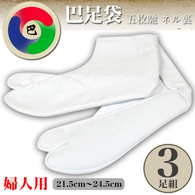 日本製 巴足袋 綿100% 五枚馳 ネル裏 綿ブロード足袋 3足組 21.5cm〜24.5cm