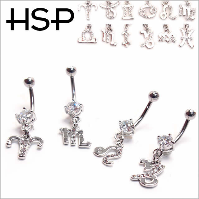 12星座のシンボルモチーフのへそピアス(バナナバーベル)。