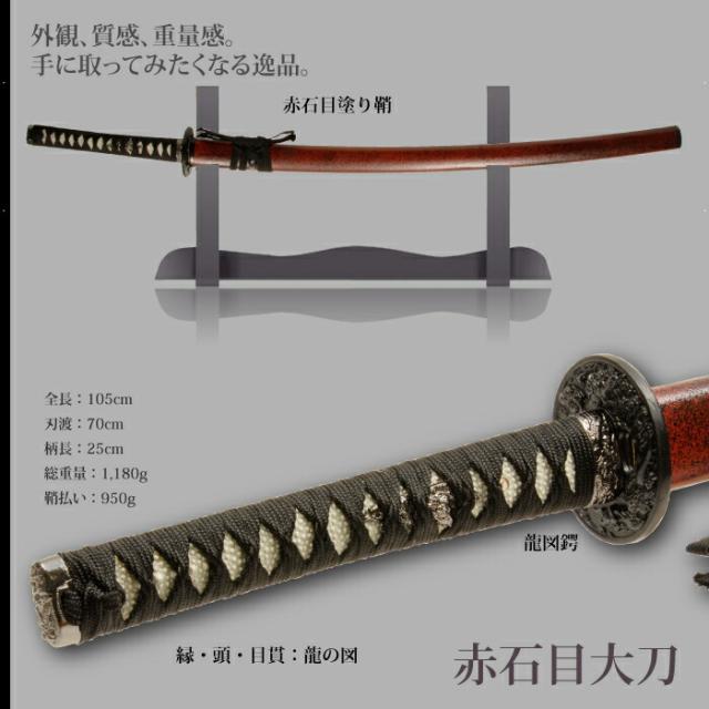 日本刀 石目シリーズ 赤石目 大刀 模造刀 鑑賞用 刀 日本製 侍 サムライ 剣 武器 レプリカ 幕末時代 おもちゃ お土産 おみやげ プレゼント 外国人 喜ぶ 新選組 新撰組 時代劇 稽古 芝居 お芝居 小道具 玩具 仮装 変装 コスプレ