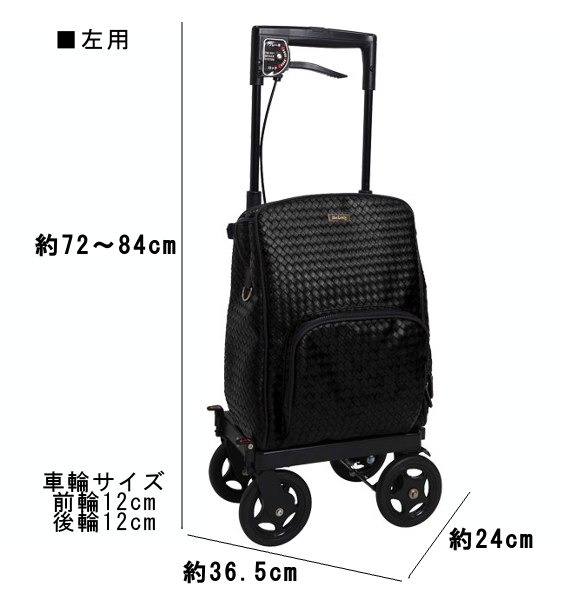 ●標準装備/ハンドル高さ調整、杖・傘置き付、保冷バッグ、2WAYキャスター(左右50°、固定)