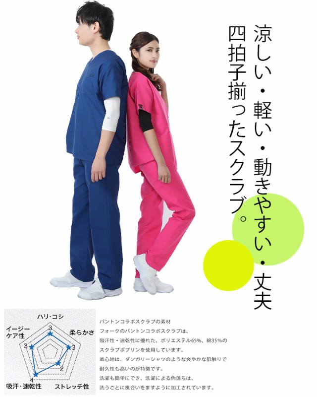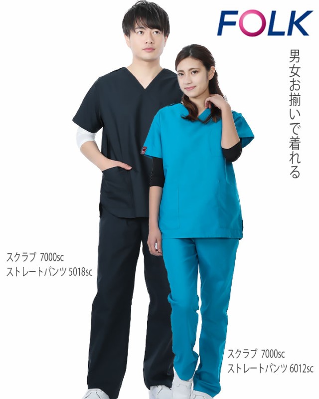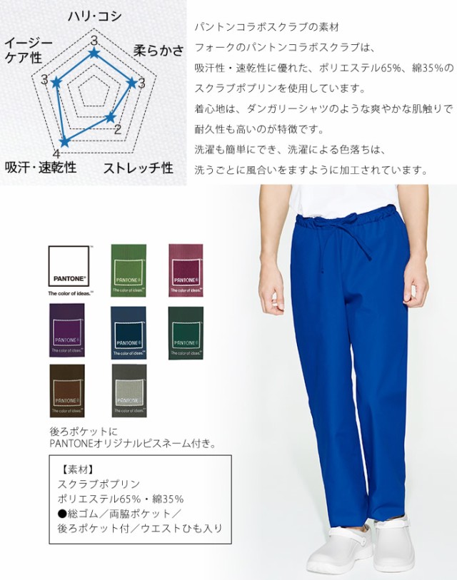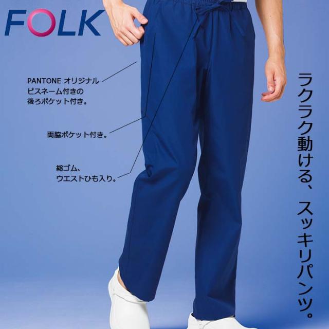 フォーク スクラブパンツ パントン 5018SC メンズストレートパンツ ウエストゴム仕様 医師 医療用 看護師 白衣 ユニフォーム クリニック 術衣 FOLK PANTONE