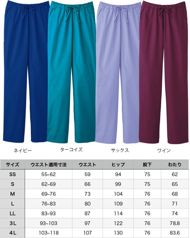 SS:わたり62、ウエスト59、ヒップ94、股下75、ウエスト適用寸法55〜62