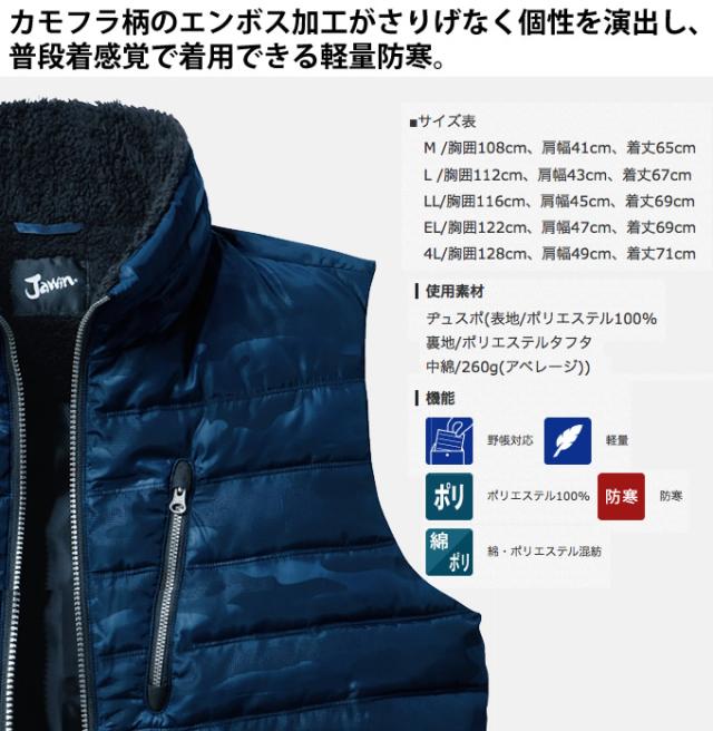 防寒ベスト ジャウィン 58510 カモフラ柄 エンボス加工 【秋冬】 JAWIN 作業服 防寒着 防寒服 作業着