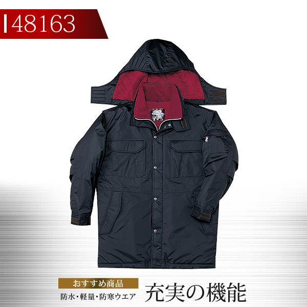 防水防寒コート【防寒着】作業服 作業着 自重堂 フード付防水防寒コート 48160シリーズ【48163】