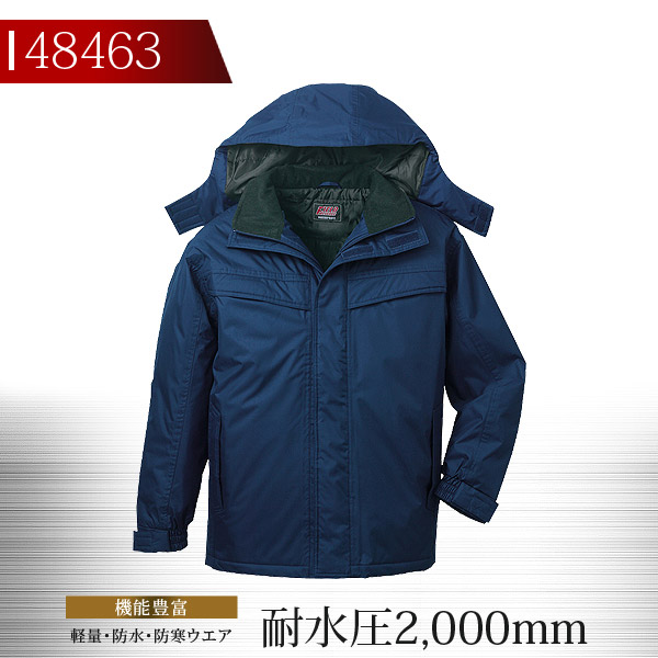 防水防寒コート【防水 コート】作業服 作業着 ユニフォーム 自重堂 フード付防水防寒ハーフコート 48460シリーズ【48463】