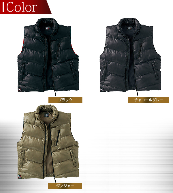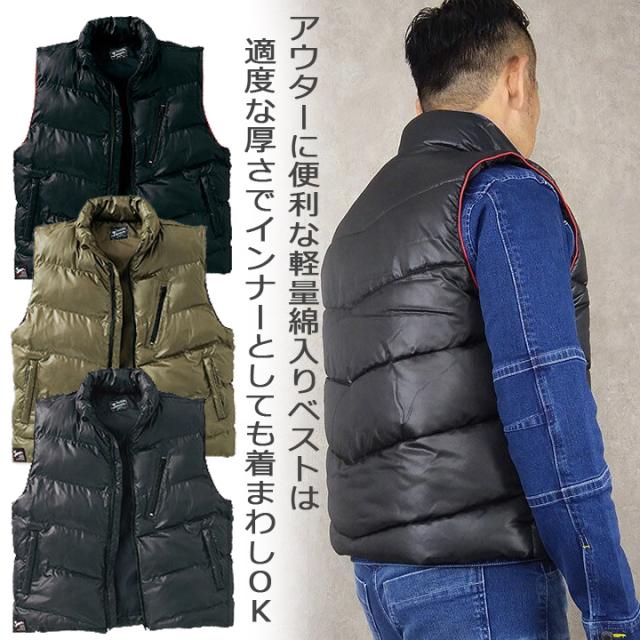 ワークウェアの上にも重ね着ができる防寒ベスト。