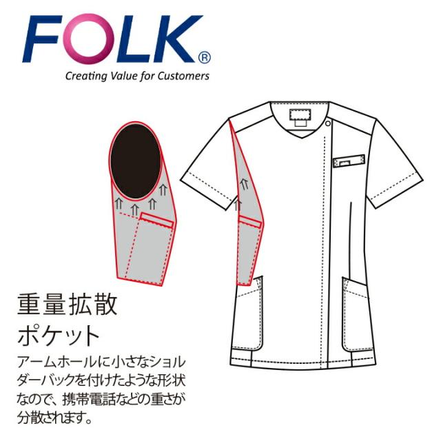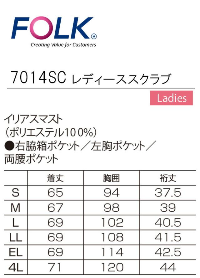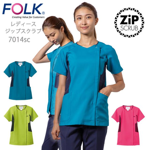 フォーク スクラブ 白衣 FOLK 7014SC レディーススクラブ(女性用) 羽織って着る ジップスクラブ7014SC ユニフォーム 医師 医療用 看護師 歯科 白衣 クリニック フォーク 術衣 ピンク