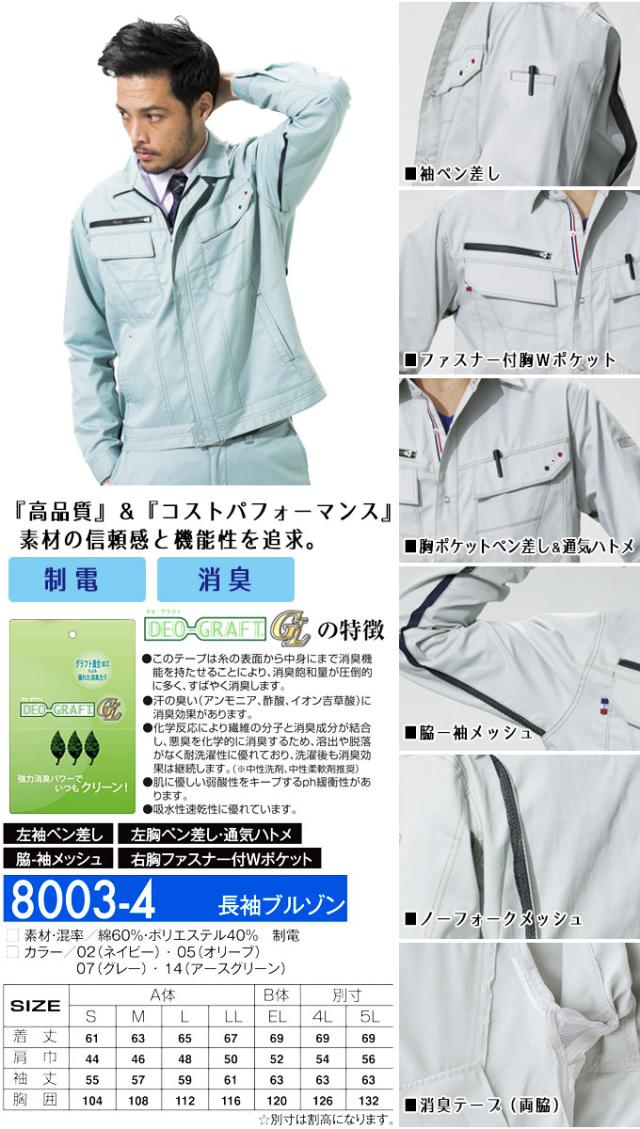 長袖ブルゾン アタックベース 80034 長袖ジャンバー ジャケット 春夏 作業服 作業着 ユニフォーム 制電 消臭 8001シリーズ