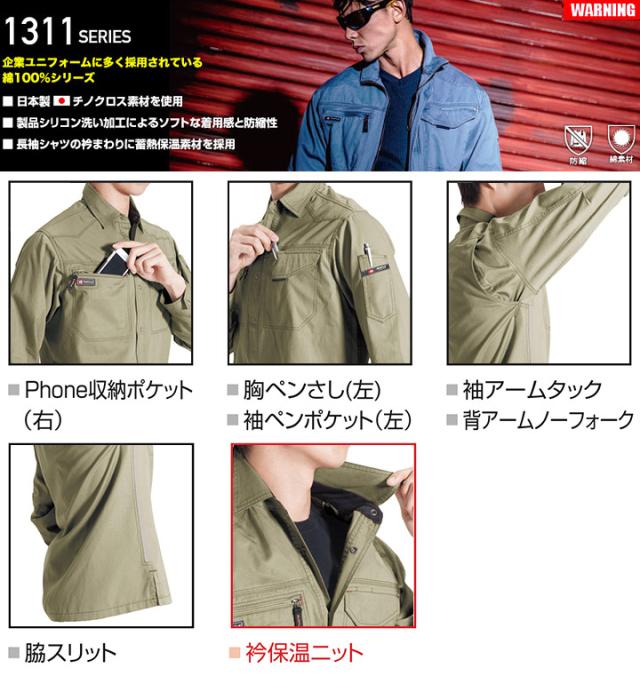 バートル 長袖シャツ 1315 【秋冬】作業服 作業着 1311シリーズ