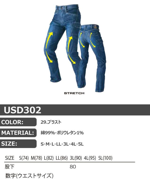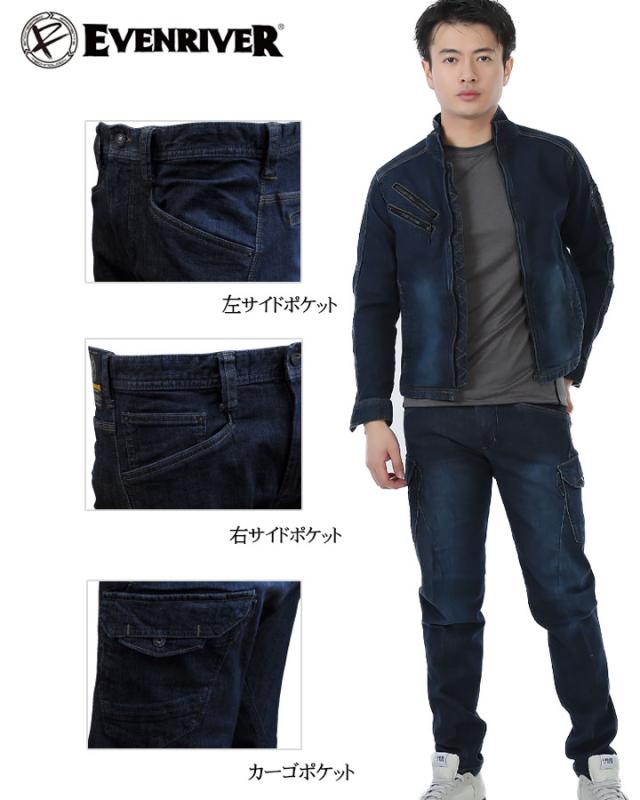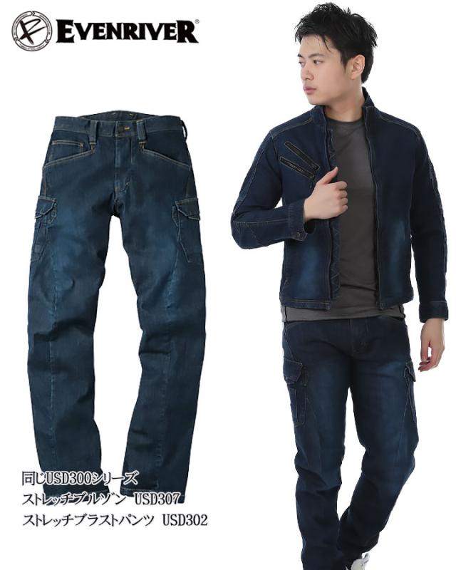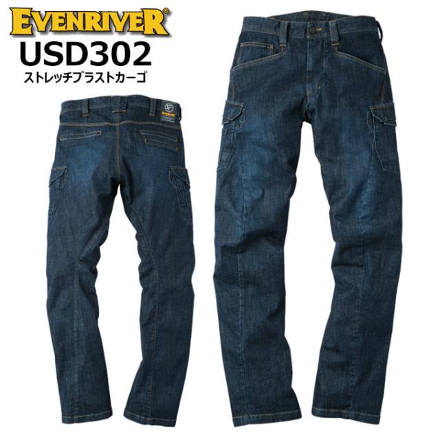 イーブンリバー 作業服 デニム ストレッチパンツ 作業着 カーゴデニム イーブンリバー USD302 ストレッチブラストカーゴパンツ EVENRIVER 作業服 作業着 ボトム デニム ズボン ワークウェア