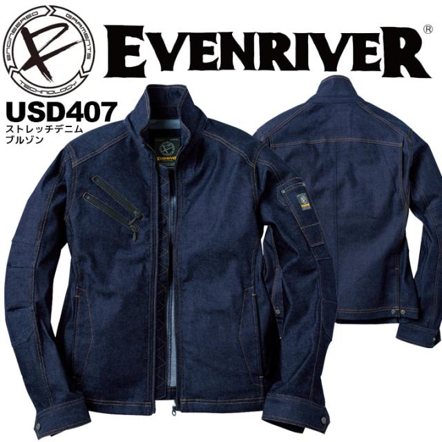 イーブンリバー 作業服 ストレッチデニムブルゾン 長袖ブルゾン 作業着 デニム 作業服 DENIM ジャンバー 上着 EVENRIVER USD407【S-3L】