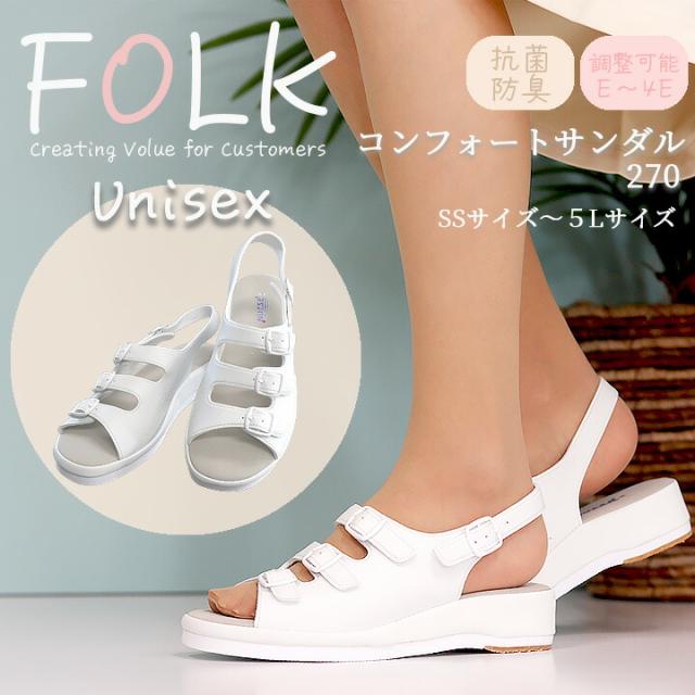 ナースサンダル FOLK コンフォートサンダル 270 男女兼用 メンズ レディース ナースシューズ 白 ピンク ブルー 看護士 看護師 病院 医療 介護 疲れにくい 防臭 抗菌 病院 SS~3L ベルト調整 富士ゴムナース 履きやすい