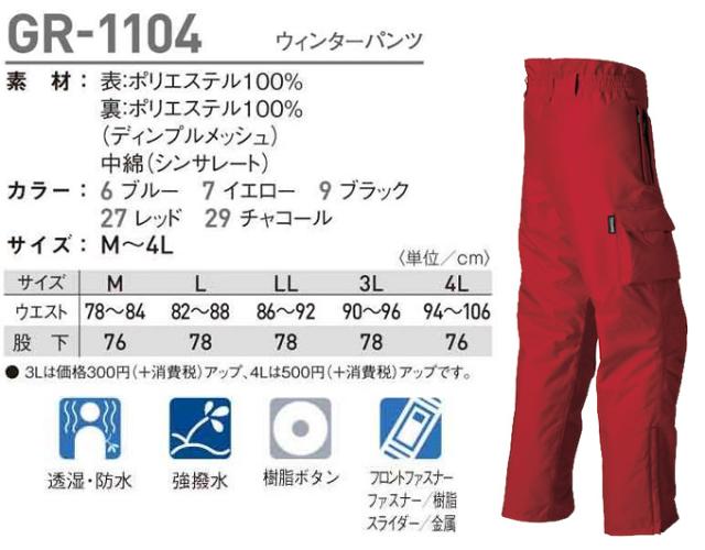 タカヤ商事 ウインターパンツ GR-1104【防水防寒】 防寒ズボン 防寒服 防寒着 作業服 作業着 【防水 透湿防寒ズボン】GR-1103シリーズ