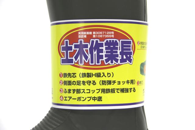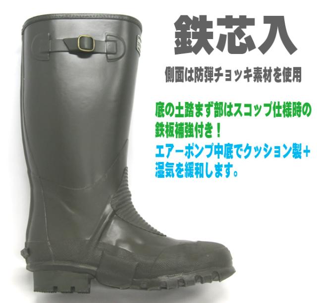 ●特長: つま先に鉄芯を入れた長靴。側面に足を守る防弾チョッキ用繊維使用。土木、建設作業のための完全防水総ゴムの長靴。土踏まず部分にスコップ作業のための、作業を補強する鋼板入り。ムレの防止のため、エアーポンプ中敷を搭載。 ●標準質量(g/片足): 1025(25.5cm) ●材質(先芯): 鋼鉄製 ●種別: 長靴 ●色: グリーン ●長さ(cm): 38.0 ●材質(アッパー): ラバー ●材質(インナー): メリヤス★コストパフォーマンスに溢れた商品です。是非お試しください。
