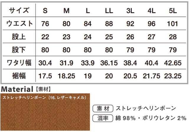 5L:ウエスト101/股上28/股下79/ワタリ幅42.65/裾幅23.25