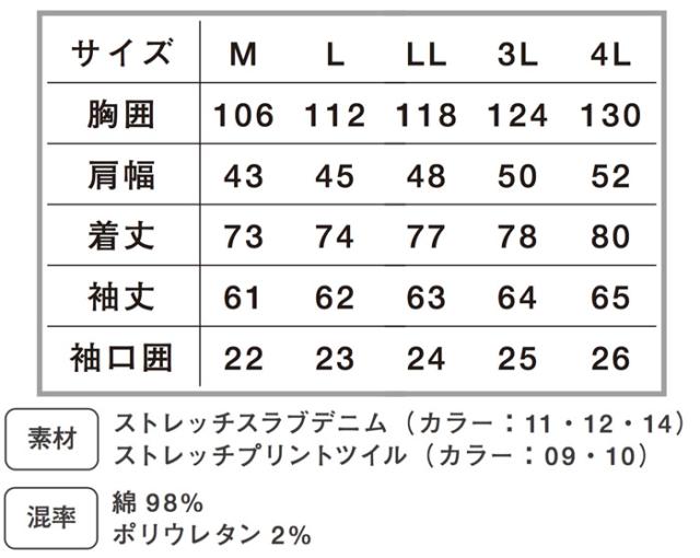 4L:胸囲130/肩幅52/着丈80/袖丈65/袖口囲26