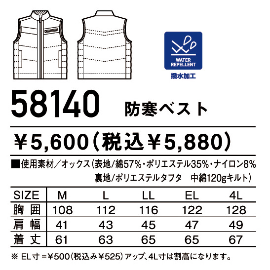 防寒ベスト ジャウィン 58140【秋冬】作業服 作業着 JAWIN 防寒服 防寒着 自重堂 58110シリーズ
