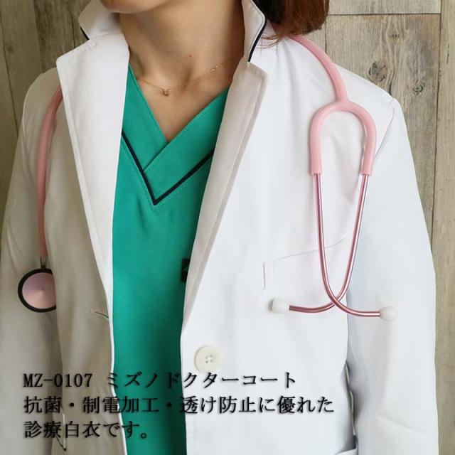 MIZNOチェスターコート風パイピング入り女性用ドクターコート。